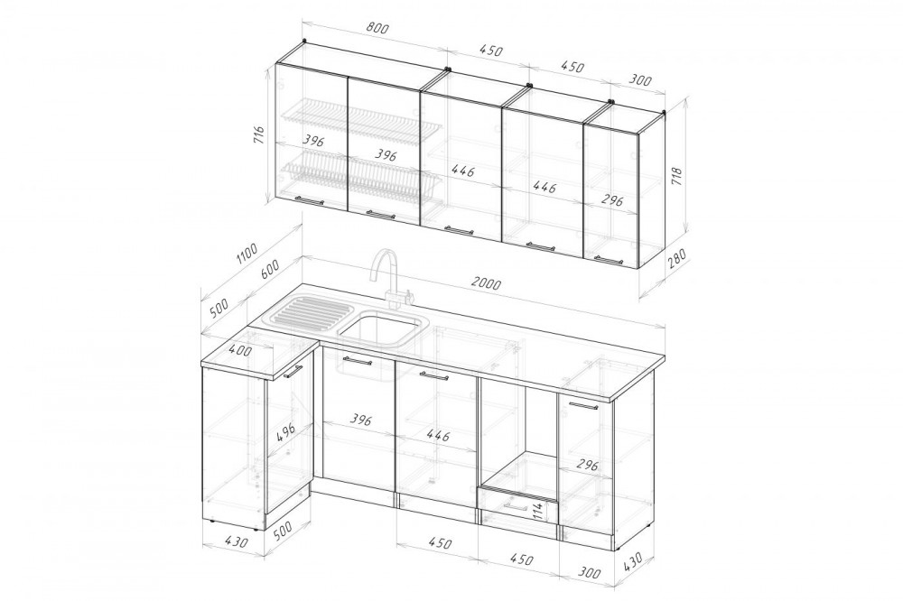 Размеры (Ш*В*Г)(мм): 2000*0*1100